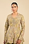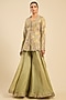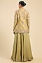 Featuring a sage green peplum in chanderi and organza base. It is paired with sharara. Accentuate it with statement earrings, a colour-coordinated clutch and heels for a regal look , perfect for mehendi ceremony or grand festive celebrations.
