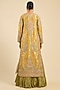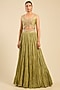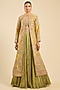 Featuring a sage green striped long jacket in chanderi, chanderi brocade and organza base. It is paired with a crushed skirt. Accentuate it with statement gold jewellery, a potli bag and block heels for a regal look, perfect for weddings, sangeet or engagement ceremonies.