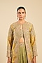 Sage Green Chanderi & Organza Striped Long Jacket Set