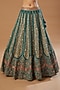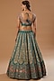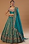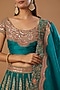 Featuring a turquoise blue lehenga in dupion base with boota embroidery. It is paired with a matching blouse and an organza dupatta.