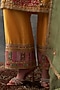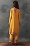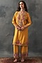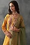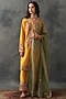 Featuring a yellow kurta in chanderi and organza base with velvet patch work. It is paired with pants and a dupatta. Style with polki earrings and heels for festive celebrations or haldi ceremony.