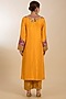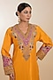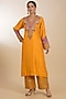 Featuring a yellow kurta in dupion and chanderi base with a V-neckline and patchwork. It is paired with pants. Accentuate it with silver jhumkas and embroidered juttis for a stylish ensemble, ideal for festive occasions or haldi ceremony.