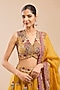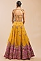 Featuring a yellow sixteen kalidar lehenga in organza base. It is paired with a blouse and a dupatta. Accentuate it with statement jewellery and heels for a wedding, haldi, sangeet or engagement ceremony.
