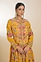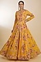 Yellow Organza Patchwork Front Open Kalidar Anarkali Set