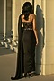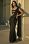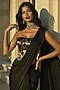 Featuring a black pre-stitched saree in recycled polyester base. It is paired with a foil printed corset. Accentuate it with statement earrings and elegant heels for a stylish ensemble, ideal for cocktail soirees or sangeet nights.