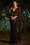 Black Satin Georgette Sequins Work Pre-Stitched Saree Set