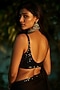 Featuring a black pre-stitched saree in satin georgette base with sequins border. It is paired with a sleeveless blouse having deep v-neck and sequins embellishments. Accentuate it with a statement choker and dangling earrings, stilettos or embellished flats and a sleek clutch to complete for cocktail events, festive nights or wedding receptions.