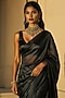 Featuring a black saree in satin base. It is paired with sleeveless blouse having a deep neck. Accentuate it with jewellery like a statement choker or chandelier earrings to elevate the look, slip into heels, and you are ready for weddings, cocktail nights or any event where you want classic style with a fresh attitude.
