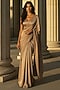 Gold Satin Crepe Pre-Stitched Saree Set