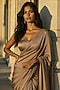 Featuring a gold pre-stitched saree in satin crepe base. It is paired with one shoulder corset. Accentuate it with a pair of statement earrings, slip into strappy heels, and you are ready for cocktails, weddings, or any event where you want to stand out without trying too hard.