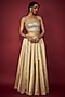 Featuring a gold lehenga in satin base. It is paired with a blouse having sequins and crystal hand embroidery. Accentuate with statement earrings and heels for a sangeet or cocktail ceremony.
