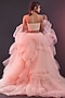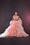 Featuring a blush pink lehenga for girls in tulle and polyester mesh base. It is paired with matching embellished crop top and a dupatta.
