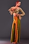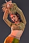 Featuring an olive green crop top for girls in polyester mesh and silk base with sequins embellishments and feather detailing. It is paired with matching flared pants.