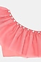 Featuring a red one-shoulder crop top for girls in tulle base with floral-shaped sequins and ruffle detail. It is paired with high-waist sharara pants. Style this designer set with sandals for any festive occasion.