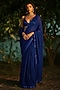 Featuring a navy blue pre-stitched saree in satin georgette base with sequins border. It is paired with a sleeveless blouse having deep v-neck and sequins embellishments. Accentuate it with a statement choker and dangling earrings, stilettos or embellished flats and a sleek clutch to complete for cocktail events, festive nights or wedding receptions.