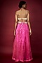 Featuring a neon pink lehenga in organza base. It is paired with a blouse having pearl sequin and crystal hand embroidery, including a pearl droplet belt. Accentuate it with statement jewellery and heels for a wedding or engagement ceremony.