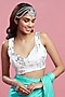 Featuring a turquoise saree in satin base with crystal and boota work embroidery. It is paired with a recycled polyester printed blouse having v-neckline. Accentuate this designer saree set with statement jewellery and heels for a wedding or sangeet ceremony.