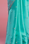 Turquoise Satin Crystal & Boota Embroidered Saree Set