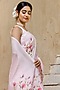 Featuring a pink in chanderi base with hand-painted floral motifs. It is paired with a matching blouse.