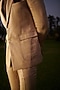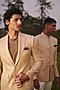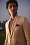 Featuring a beige blazer in linen base with patch pocket and drape detail. This contains only one piece.