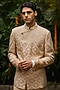 Beige Silk Embroidered Asymmetric Overlapped Bandhgala