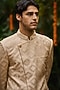 Featuring a beige asymmetrical overlap bandhgala in silk base with metal buttons and diamond embroidery. Style it with pants, mojaris for a reception, sangeet, wedding or engagement ceremony.