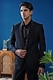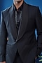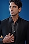 Featuring a black tuxedo in perennial wool base with satin shawl lapel and pintuck detail. Style it with pant set for a reception, cocktail or grand evening celebration.