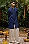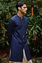 Featuring a blue front-open kurta in blended silk base. Style it with pants and mojaris for a festive occasion, cultural occasion, wedding or engagement ceremony.