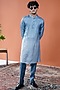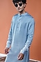 Featuring a blue ombre kurta in linen satin base with tonal embroidery. Style it with pants and kolhapuri sandals for a festive occasion, family gathering or intimate pooja ceremony.