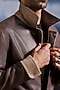 Featuring a brown jacket in faux leather base with snap buttons, zipper and bellow pockets. Style it with pants and pair of shoes for a casual wear, outing or vacation wear.
