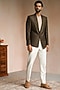 Featuring a cedar brown pinstriped blazer in linen base. This contains only one piece.