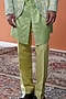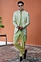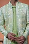 Featuring a green indowestern in cotton tussar base with floral print and pintuck detail. It is paired with a kurta. Style it pants for a wedding, mehendi or sangeet ceremony.