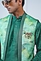 Featuring a green bundi jacket in linen satin base with print and pockets. It is paired with a kurta. Style it with pants and kolhapuri sandals for a festive occasion, destination wedding, mehendi or engagement ceremony.