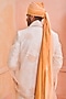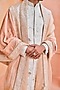 Featuring an ivory sherwani in silk base with embroidery. It is paired with a matching kurta, trousers and a silk tissue hand embroidered stole.