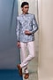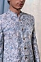 Featuring a light blue bandhgala jacket in cotton silk base with patchwork embroidery and print. Perfect for festive occasions or wedding ceremony, exuding charm and elegance.