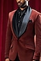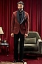 Featuring a maroon tuxedo in corduroy base with satin shawl collar and piping detailing. Style it with pants and pair of shoes for a reception, award function or engagement ceremony.