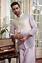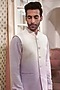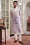 Featuring an off-white and mauve ombre bundi jacket in cotton silk blend base. It is paired with a tonal kurta and off-white trousers. Perfect wear for a festive occasion or wedding ceremony.