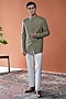 Featuring an olive green bandhgala in perennial wool base with pintuck detailing. Style it with white pants and loafers for a reception, wedding, mehendi or sangeet ceremony.