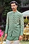 Featuring an ombre green pintucks bandhgala in silk blend base with applique and thread embroidery. It is paired with a mysore silk kurta. Style it with pants, mojaris for a festive occasion, mehendi, wedding or engagement ceremony.