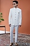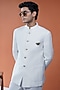 Featuring a pristine white bandhgala in linen base with pockets and pintuck detailing. Style it with pants and loafers for a reception, wedding, engagement or sangeet ceremony.