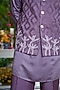 Featuring a purple bundi jacket in silk base with floral dori work and geometric embroidery. It is paired with a kurta and trousers. Style it with mojaris for a reception, sangeet, wedding or engagement ceremony.