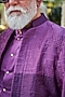 Featuring a purple indo western jacket in silk base with embroidery. It is paired with a kurta and cotton tussar pants. Style it with a mojaris for a festive occasion, haldi, wedding or engagement ceremony.