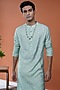 Featuring a sage green kurta in cotton tussar base with leafy print. Style it with pants and kolhapuri sandals for a festive occasion, mehendi or intimate pooja ceremony.