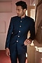 Featuring a teal blue bandhgala in jacquard base. Perfect wear for pre-wedding ceremonies.