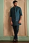 Teal Blue Raw Silk Embroidered Bundi Jacket