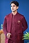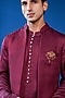 Featuring a wine bundi jacket in linen satin base with pockets and thread embroidery. Style it with a kurta set and kolhapuri sandals for a festive occasion, destination wedding, sangeet or engagement ceremony.