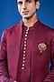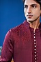 Featuring a wine bundi jacket in linen satin base with pockets and thread embroidery. It is paired with a kurta. Style it with pants and kolhapuri sandals for a festive occasion, destination wedding, sangeet or engagement ceremony.
