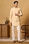 Featuring a yellow bundi jacket in cotton blend base with thread work. Perfect attire for any festive occasion, exuding traditional charm and elegance.