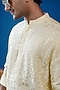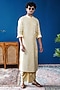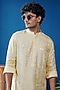 Featuring a yellow kurta in silk base with embroidery. Style it with pants and kolhapuri sandals for a festive occasion, haldi or intimate pooja ceremony.