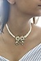 Featuring a gold finish necklace with floral motifs, kundan and shell pearls, set in mixed metal.